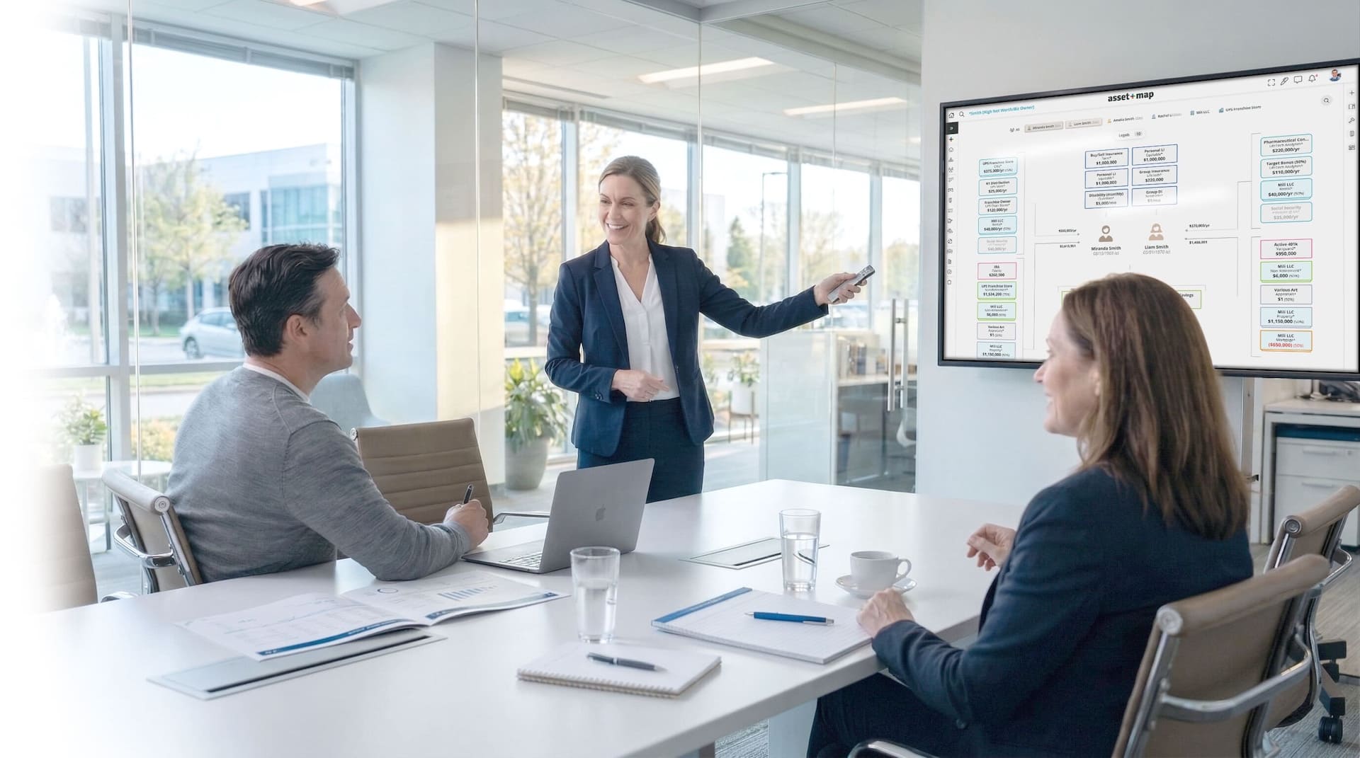 Asset-Map is the only visual-first planning platform built for how humans actually think, whether you're using it standalone, alongside eMoney or MoneyGuidePro, for discovery meetings, or client presentations.