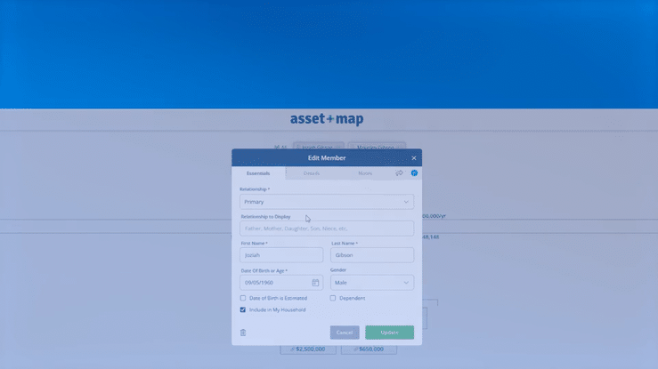 Quickly and easily create new households or update an existing household with our synchronization tool. The Asset-Map and eMoney integration is as simple as clicking a button to import the relevant data, whether it be an individual client or an entire household.