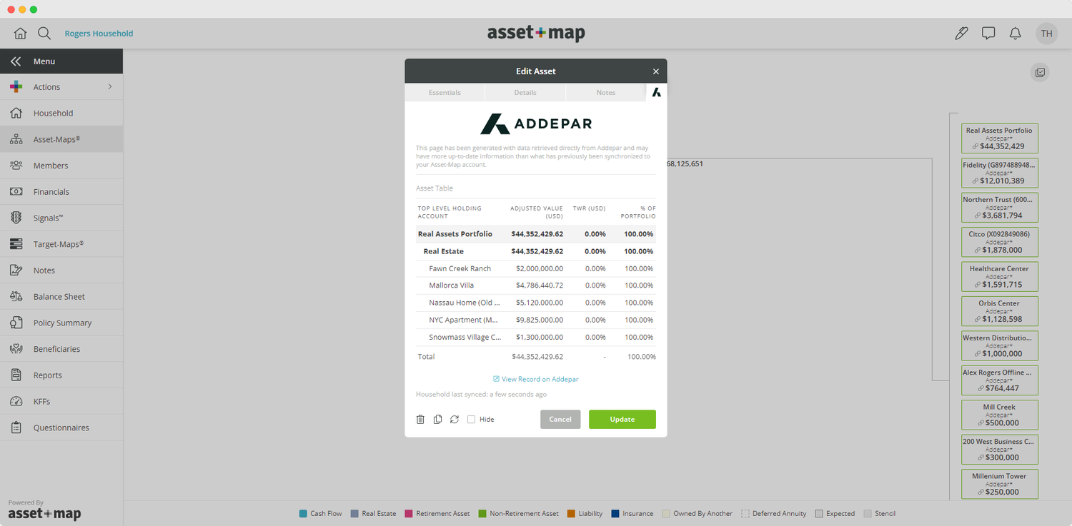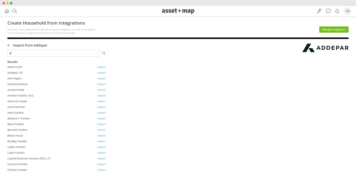 Leveraging data from Addepar, instantly create households in Asset-Map with a click of a button.