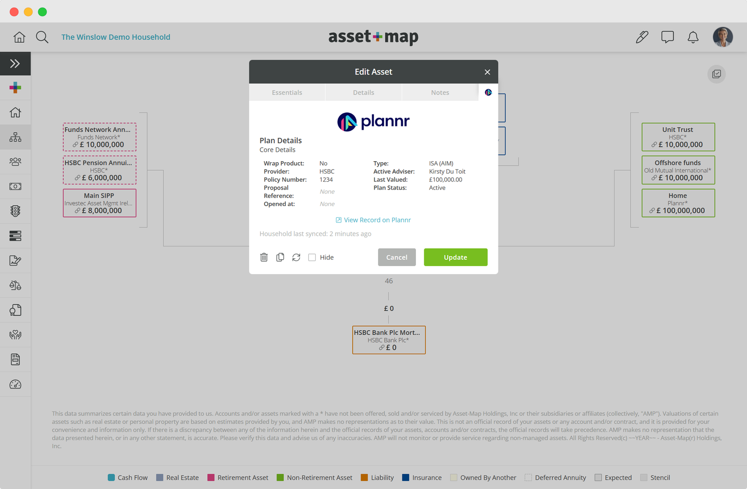 Quickly and easily activate the account via the Integrations tab. Then you can create new households or update an existing household with our synchronization tool. The Asset-Map and Plannr integration is as simple as clicking a button to import the relevant data.